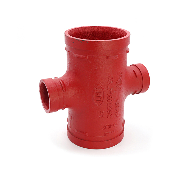 La cruz se utiliza para la conexión de tuberías ranuradas, principalmente en el extremo de la tubería ranurada donde la tubería principal necesita un ramal.