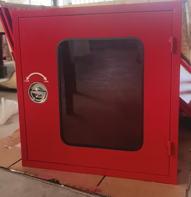 Armario contra incendios, fabricado en acero galvanizado de 1,0/1,5/2 mm con bisagra continua de alta resistencia. Todas las esquinas están ingleteadas y rectificadas suavemente. Se prevén cerraduras de tipo de seguridad específicas. Todos los componentes están recubiertos de polvo con un acabado de poliéster blanco/rojo repintable, termofundido y aplicado electrostáticamente. El montaje en pared y el tamaño del gabinete se pueden personalizar.